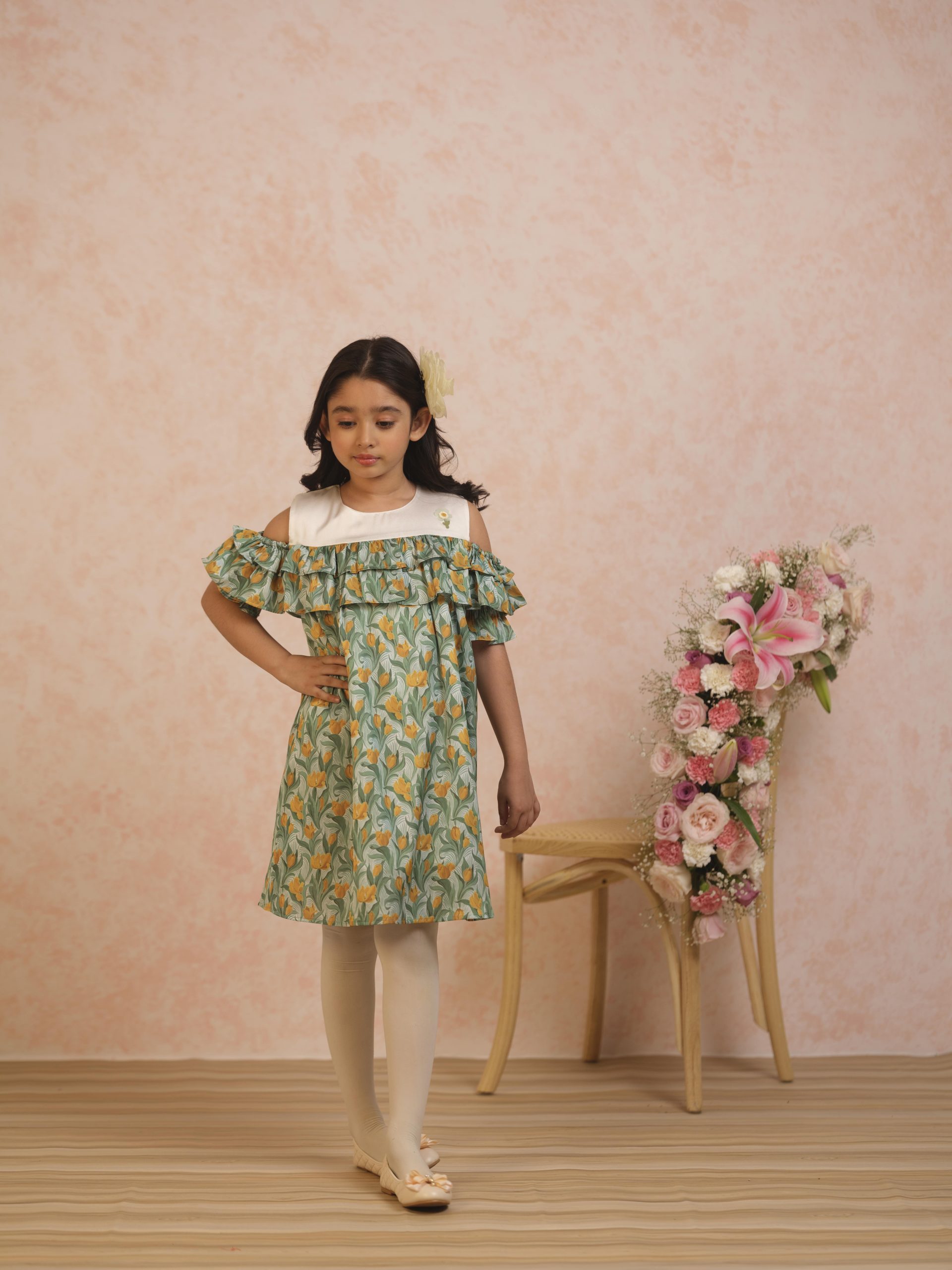 Mustard Tulip Cold Shoulder Dress-min.